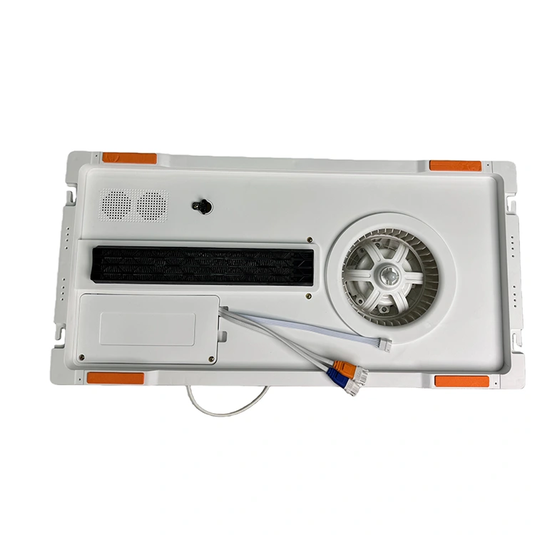 Med ett 42V LED-ljus med full panel och hög ljusstyrka är 3 i 1 PTC-takvärmare för badrum mer estetisk och praktisk. Det intelligenta vidvinkelspjället säkerställer täckning av varmluft i hela området, med justerbar vänster-höger-oscillation. Den varma luften blåser försiktigt utan direkt vind och håller varje hörn av ditt badrum varmt och mysigt.