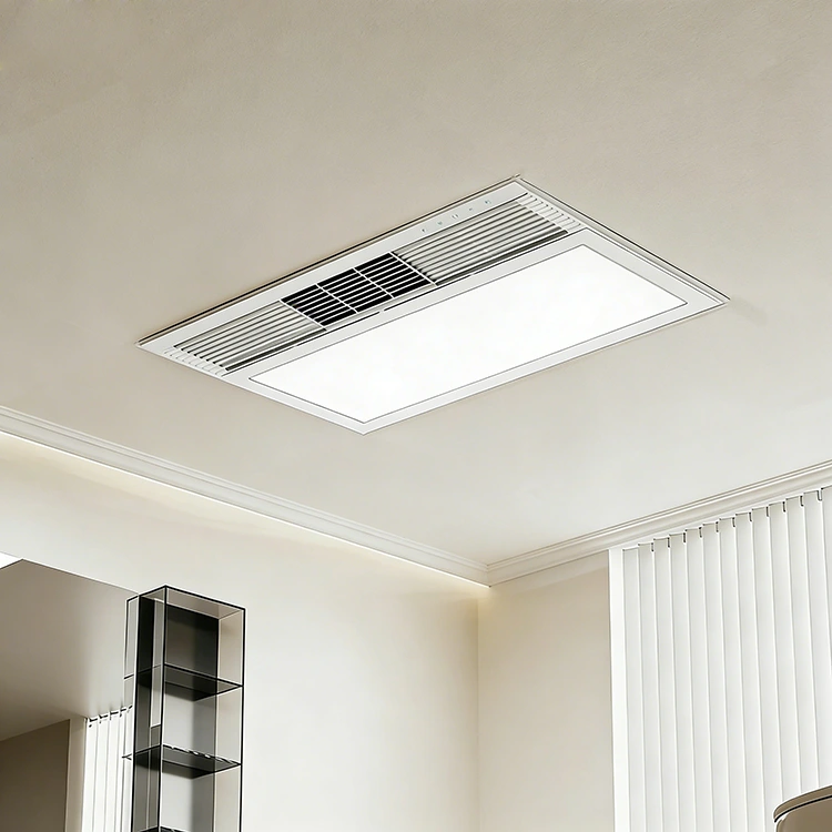 PTC Heater Exhaust Fan With LED Light har högeffektiva luftkanaler och kraftfulla värmeelement, ger stark varmluft utan lång förvärmning. Konvektion och cirkulation fördelar värmen jämnt över badrummet för konsekvent värme. Optimerad design säkerställer ultralågt ljud. Den flamskyddade kroppen med överhettningsskydd stängs automatiskt av när onormal temperatur uppstår, vilket ger säker och pålitlig prestanda. Bländfri och syrefri drift gör dem idealiska för slutna utrymmen.